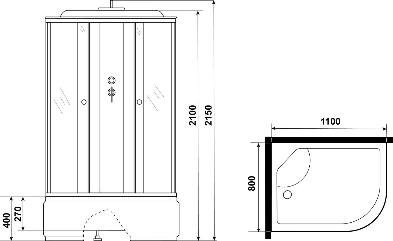 Душевая кабина Niagara Eco E110/80/40L/TN с высоким поддоном, размер 1100x800x2150 мм, левосторонняя, цвет задних стенок чёрный, ширина входа 460 мм. Высокий поддон и сифон в комплекте.