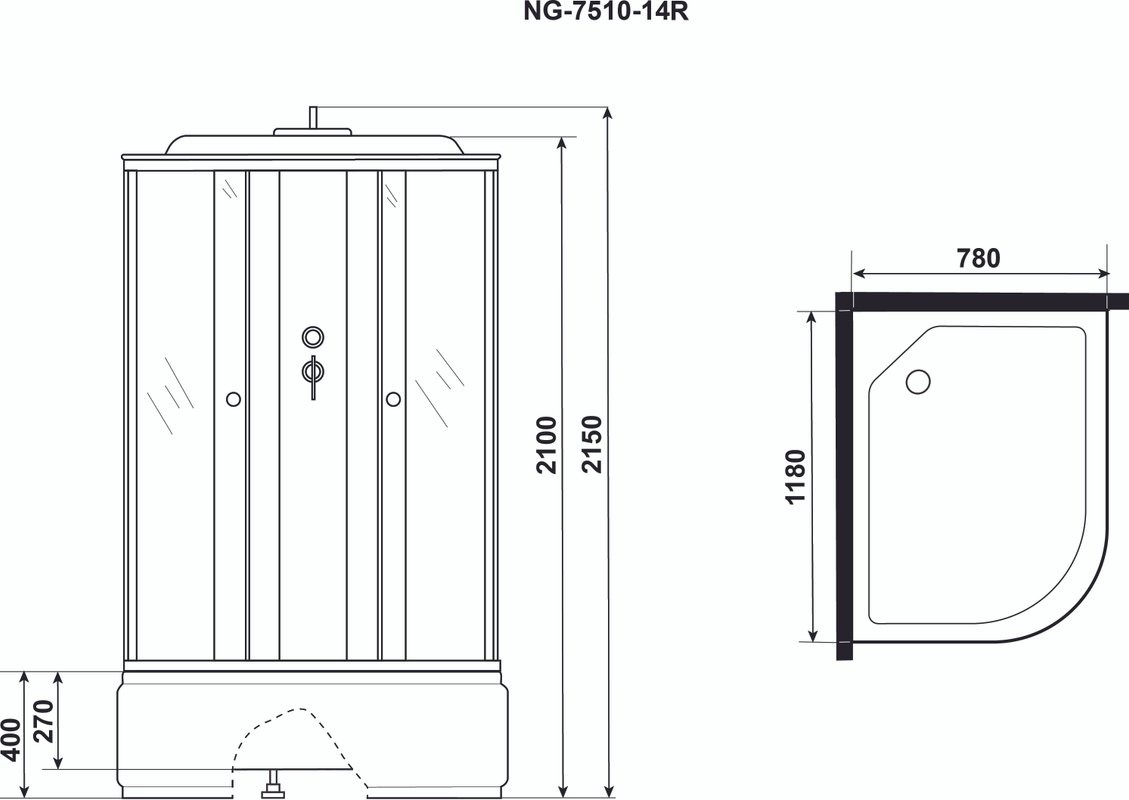 Душевая кабина Niagara Eco NG-7510-14R с высоким поддоном, размер 1180x780x2150 мм, правосторонняя, цвет задних стенок чёрный, ширина входа 480 мм. Высокий поддон и сифон в комплекте.
