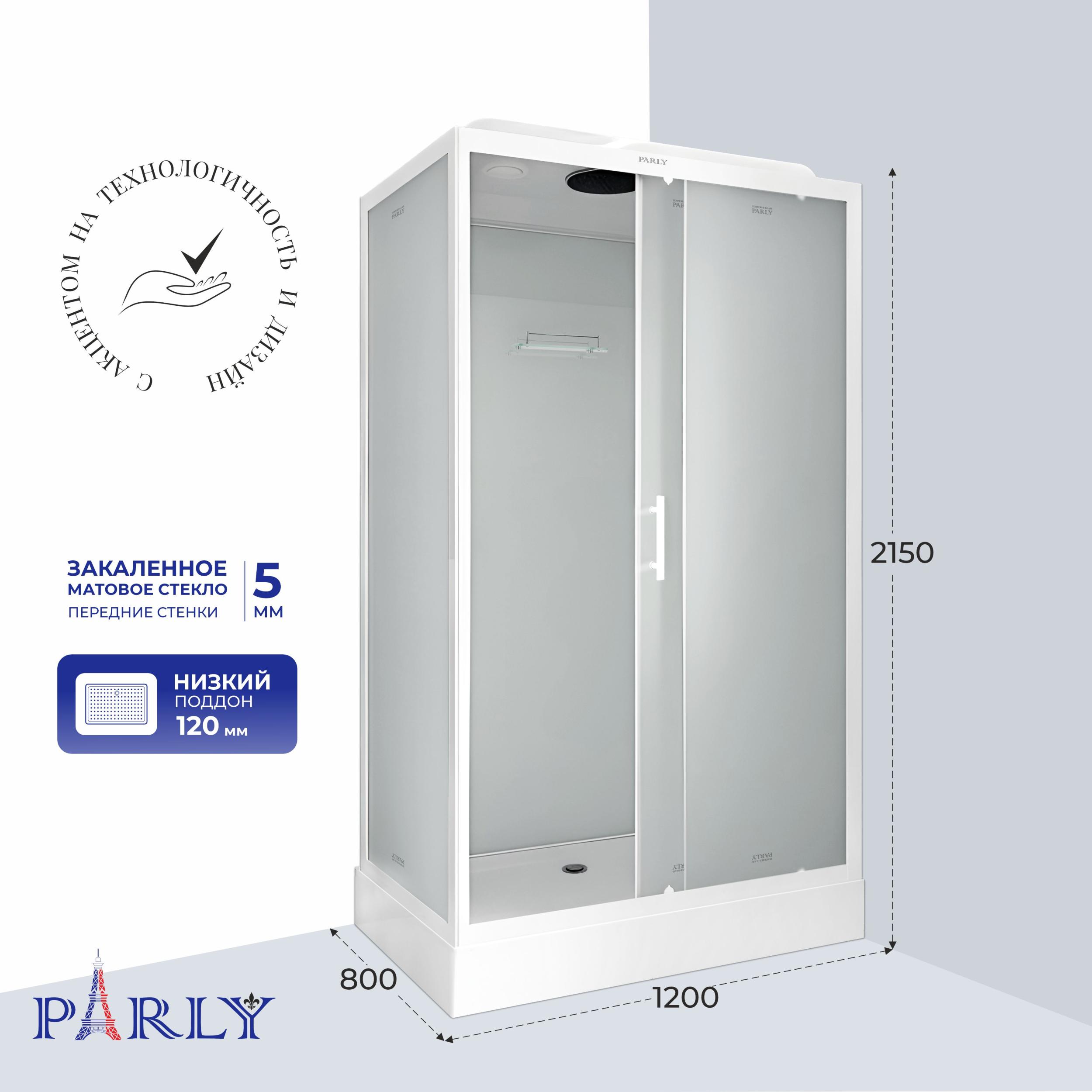 Душевая кабина Parly Bett 120х80 см BETT120, белый/матовое (безсиликоновая сборка)