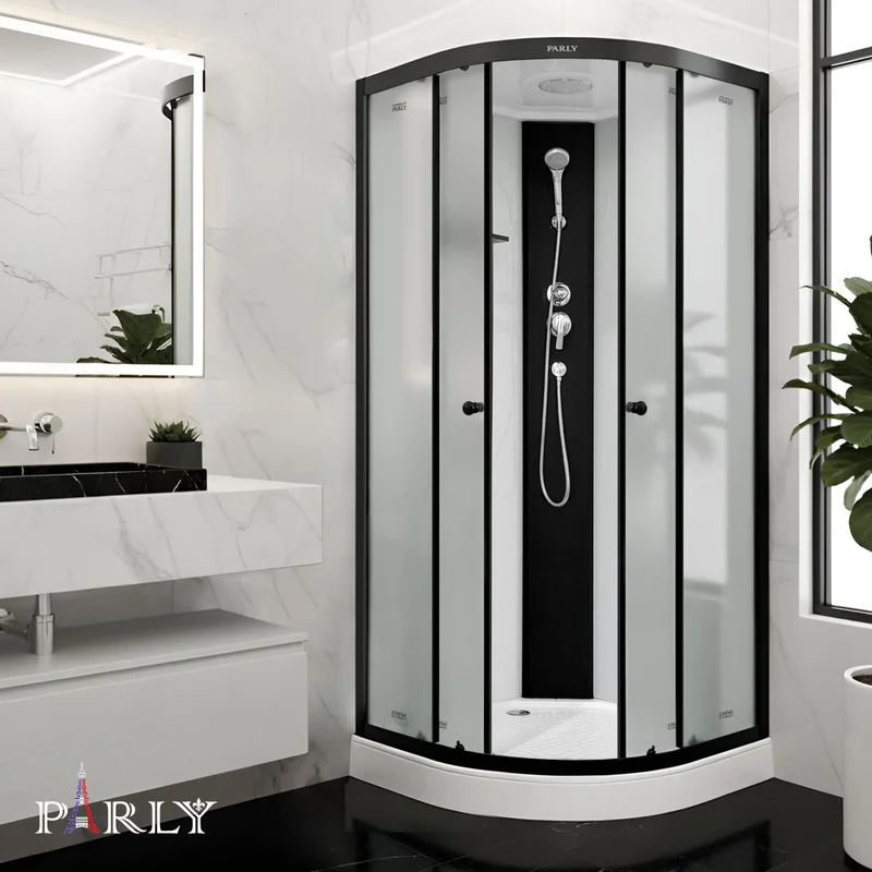 Душевая кабина Parly Bett 80х80 см B831, чёрный/матовое (безсиликоновая сборка)