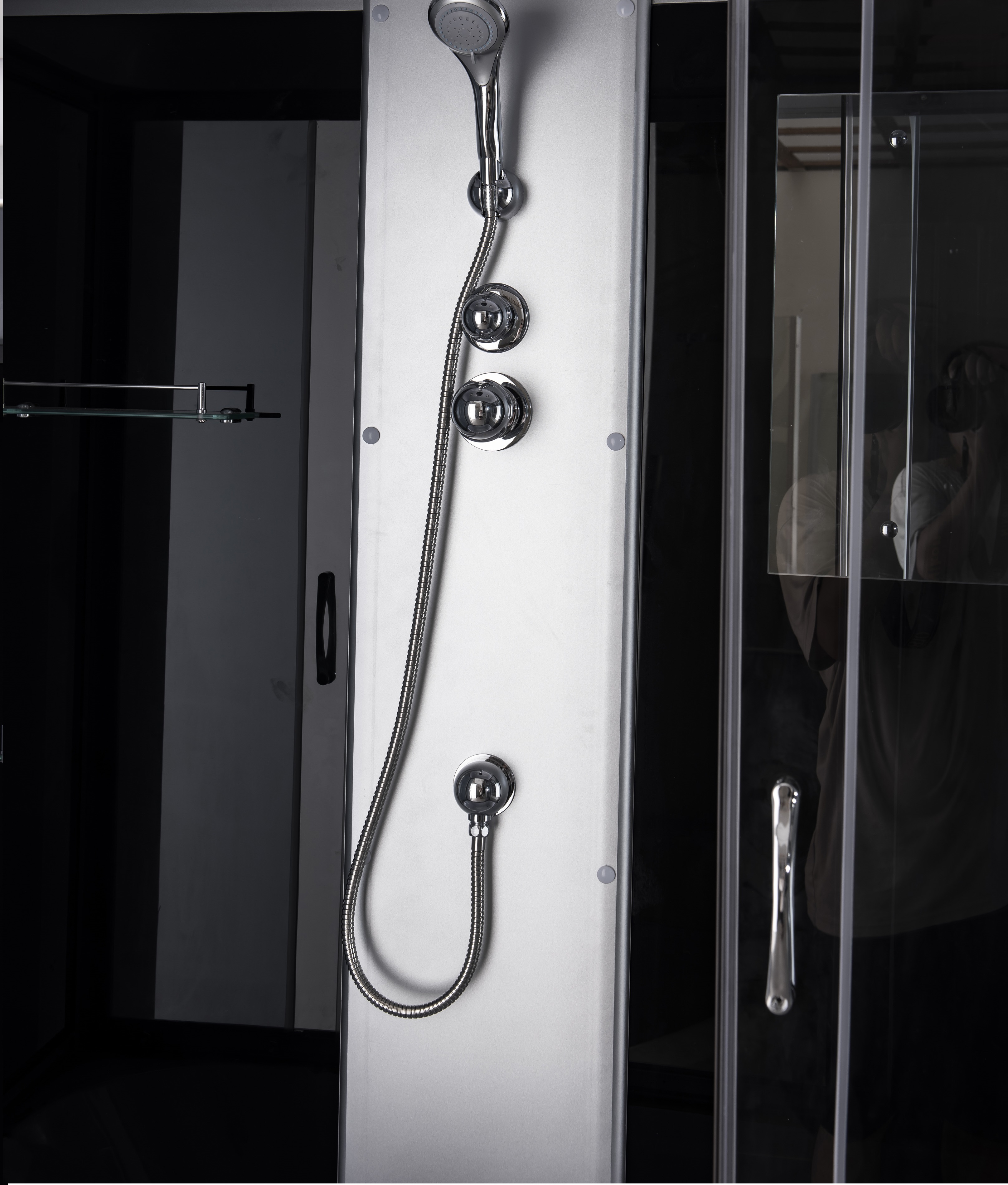 Душевая кабина Taliente TA-17075G, задние стенки - чёрные, профиль - матовый хром, стекло - тонированное 4 мм, ширина входа - 450 мм.
