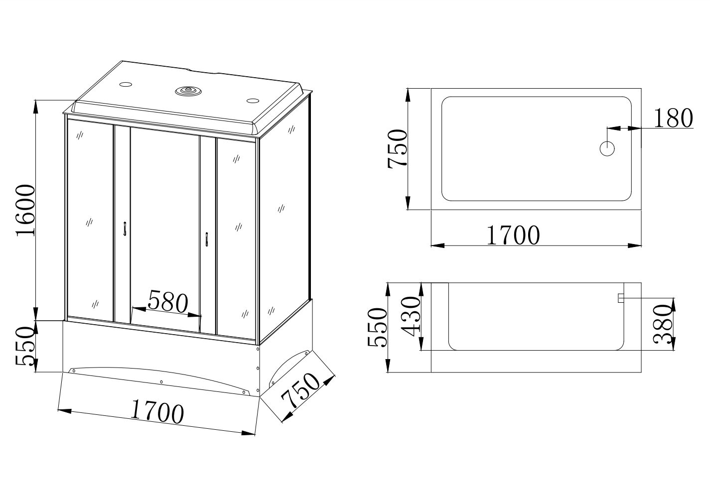Характеристики Душевая кабина Taliente (TA-17075G)