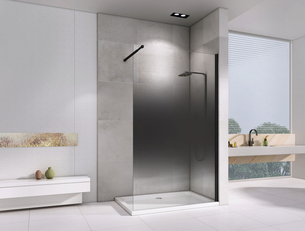 Душевая перегородка Abber Immer Offen AG69123BS с кронштейном 1200х2000 мм. Цвет профиля – черный, цвет стекла – тонированное, 6 мм. Душевой поддон приобретается отдельно.