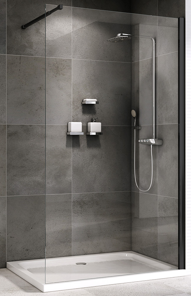 Душевая перегородка Abber Immer Offen 90 см AG61090B, черный/прозрачное