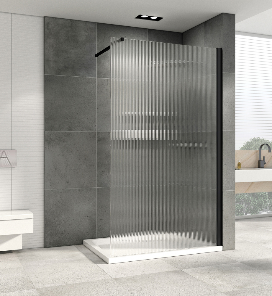 Душевая перегородка Abber Immer Offen 90 см AG61091R8 (стекло 8 мм), черный/рифленое