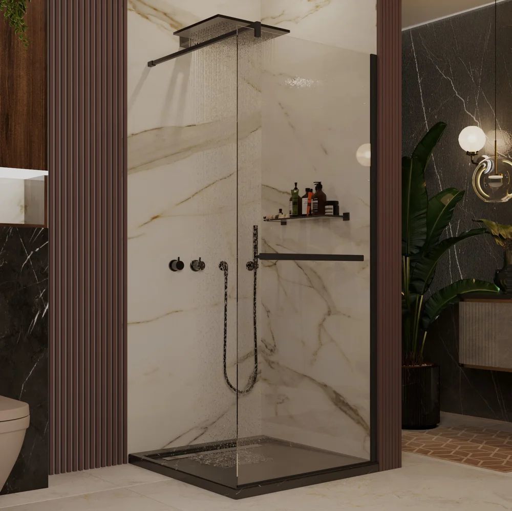 Душевая перегородка Ambassador Walk-in 100 см 15031235 с кронштейном (стекло 8 мм) чёрный/прозрачное