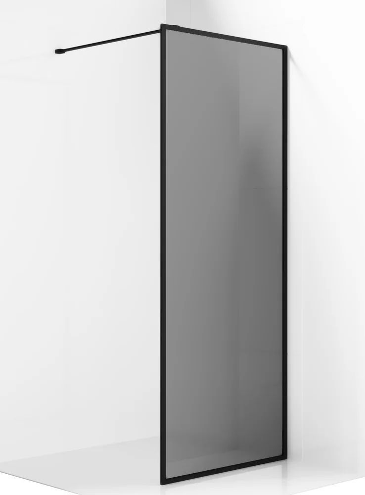 Душевая перегородка Ambassador Walk-in с кронштейном, размер 895х2000 мм, профиль чёрный, стекло тонированное. Ширина входа 1000 мм.