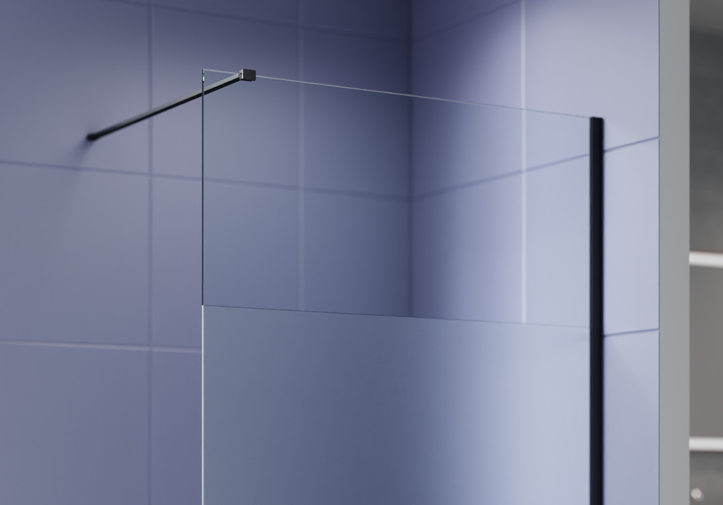 Душевая перегородка Aquatek Walk in 90 см AQ.WI.090.3BL (стекло 8 мм) с кронштейном в комплекте, чёрный матовый/матовое