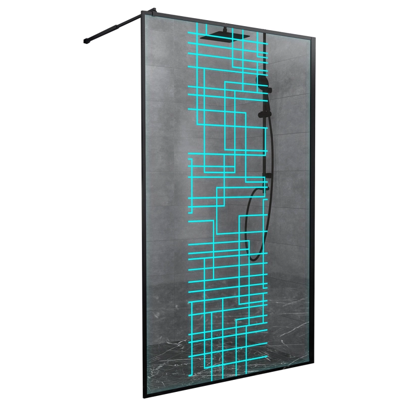 Душевая перегородка Avacan 110 см LB110 стекло (8 мм) с кронштейном в комплекте, чёрный/узор