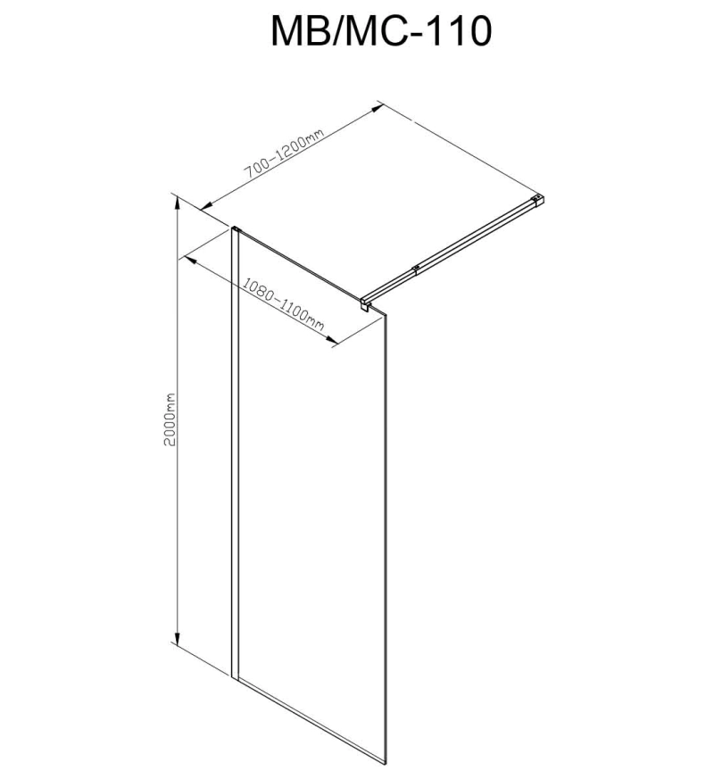 Душевая перегородка Avacan 110 см MB110MT стекло (8 мм) с кронштейном в комплекте, чёрный/матовое