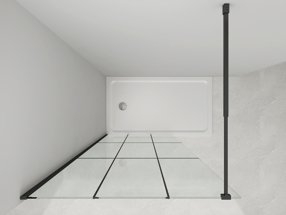 Душевая перегородка Loranto Walk-in 900х2000 мм, стекло - прозрачное 8 мм с рисунком "Лофт клетка", регулируемый кронштейн 70-120, профиль - чёрный матовый. Душевой поддон приобретается отдельно.