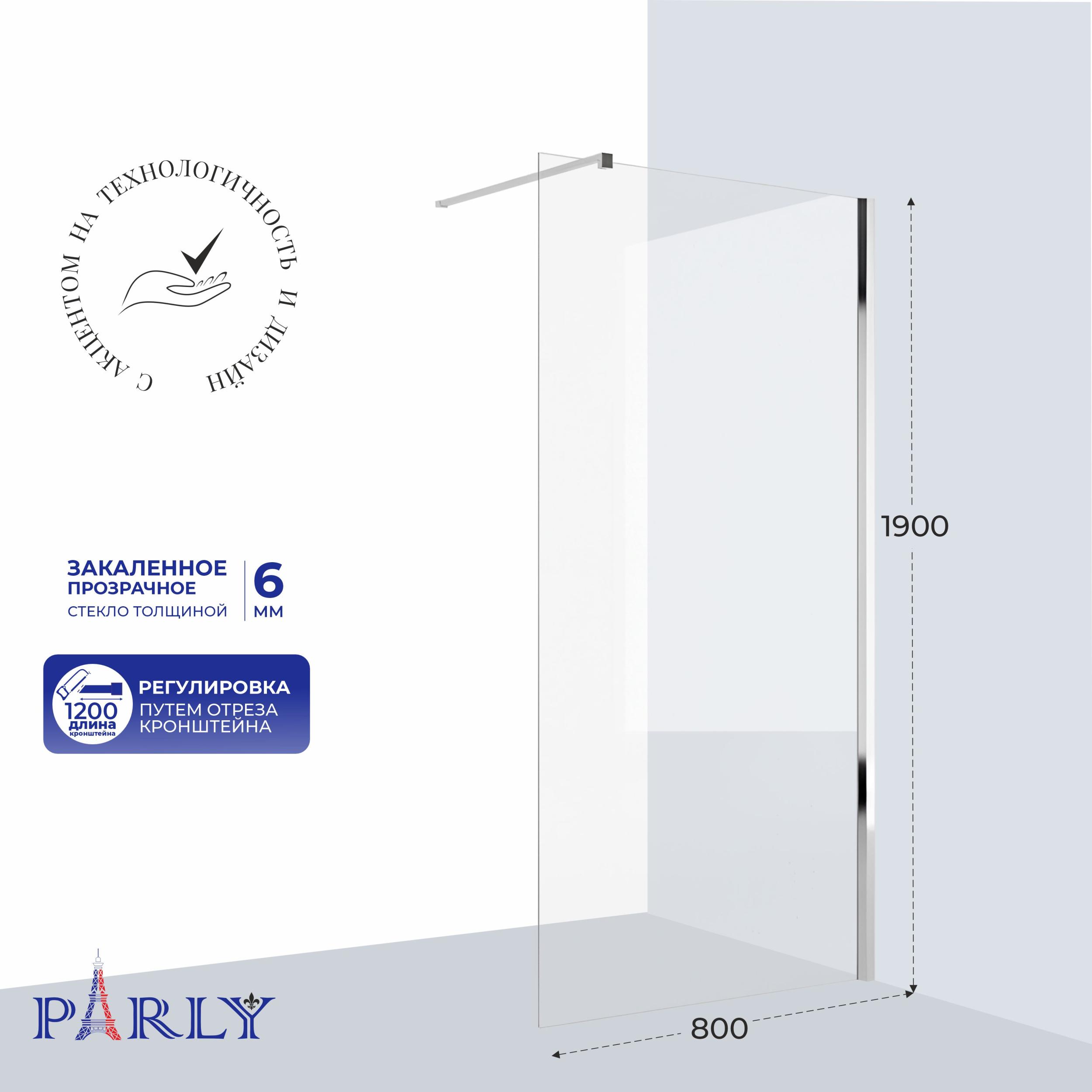 - Главное преимущество – универсальность и адаптивность: Душевое ограждение PARLY T80 отличается исключительной универсальностью. Длина, которая может достигать 1200 мм, легко регулируется разово путем отреза кронштейна в необходимую величину. Это позволяет идеально подогнать ограждение под особенности вашей ванной комнаты, обеспечивая точное соответствие и безупречный внешний вид.