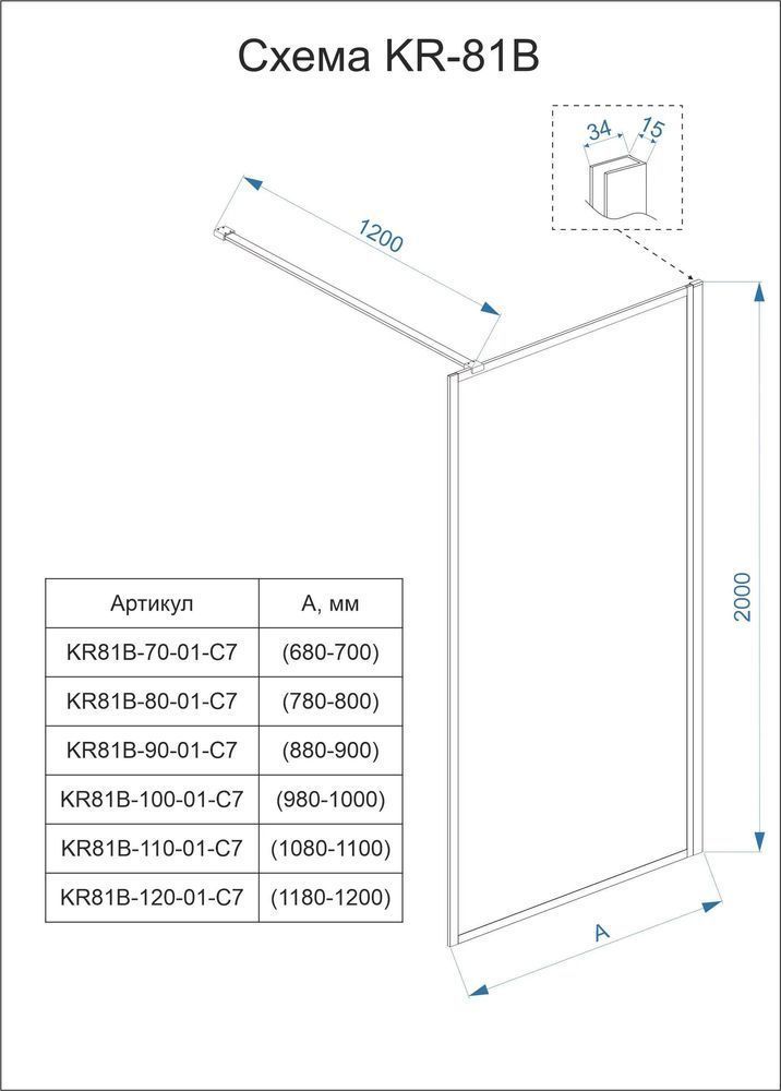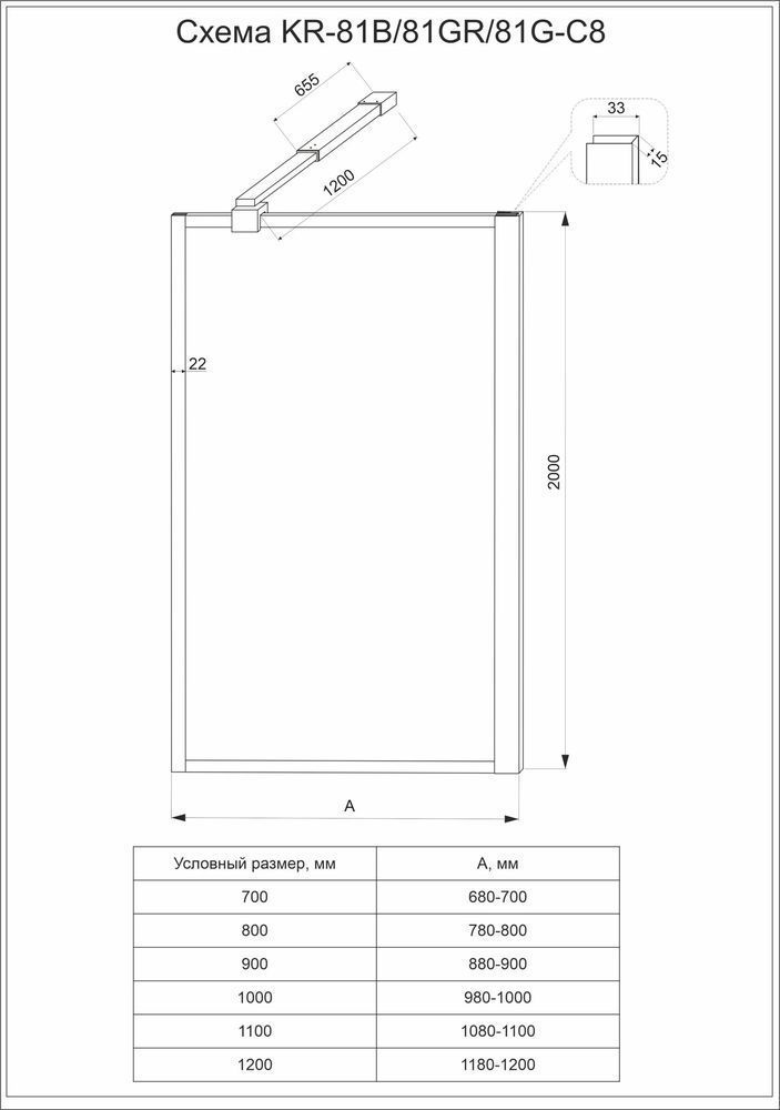 Описание Душевая перегородка Veconi KR81B-110-01-C8