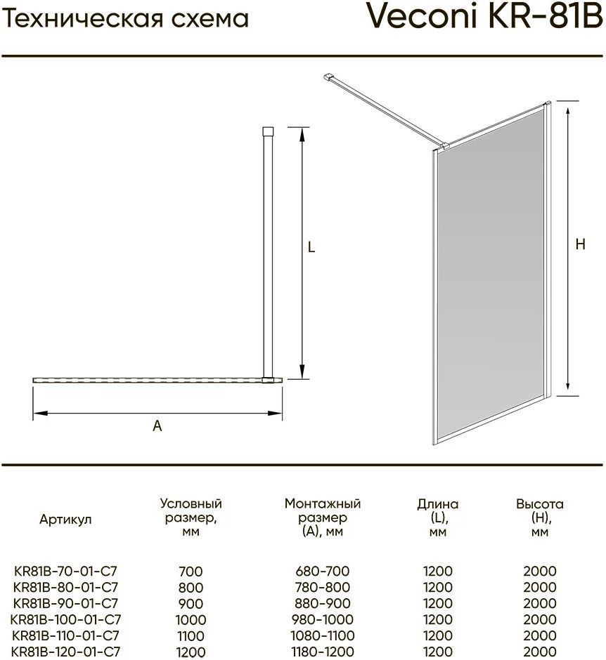 Описание Душевая перегородка Veconi KR81B-80-01-C7