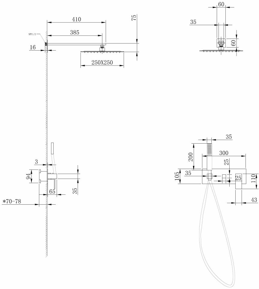 Душевая система для душа Abber Daheim AF8218NG, никель