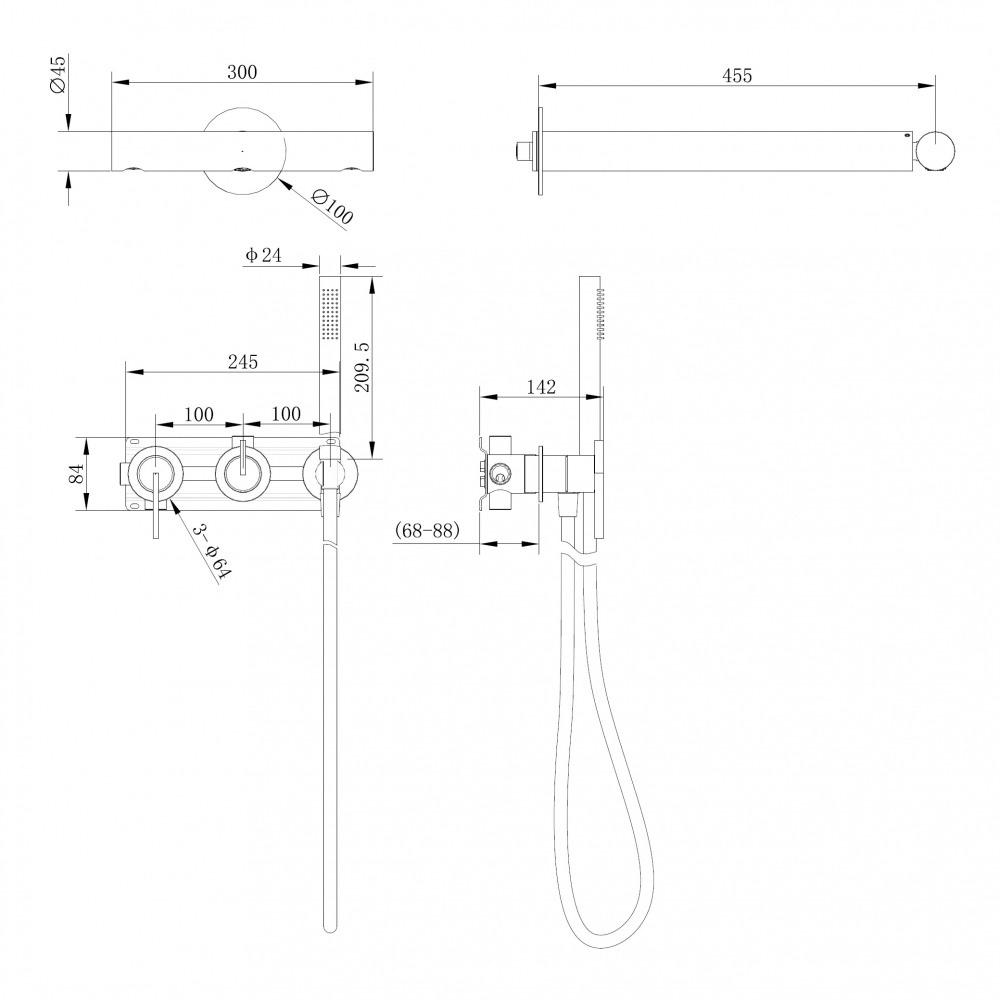 Характеристики душевая система без излива Abber (AF8A18BGG)