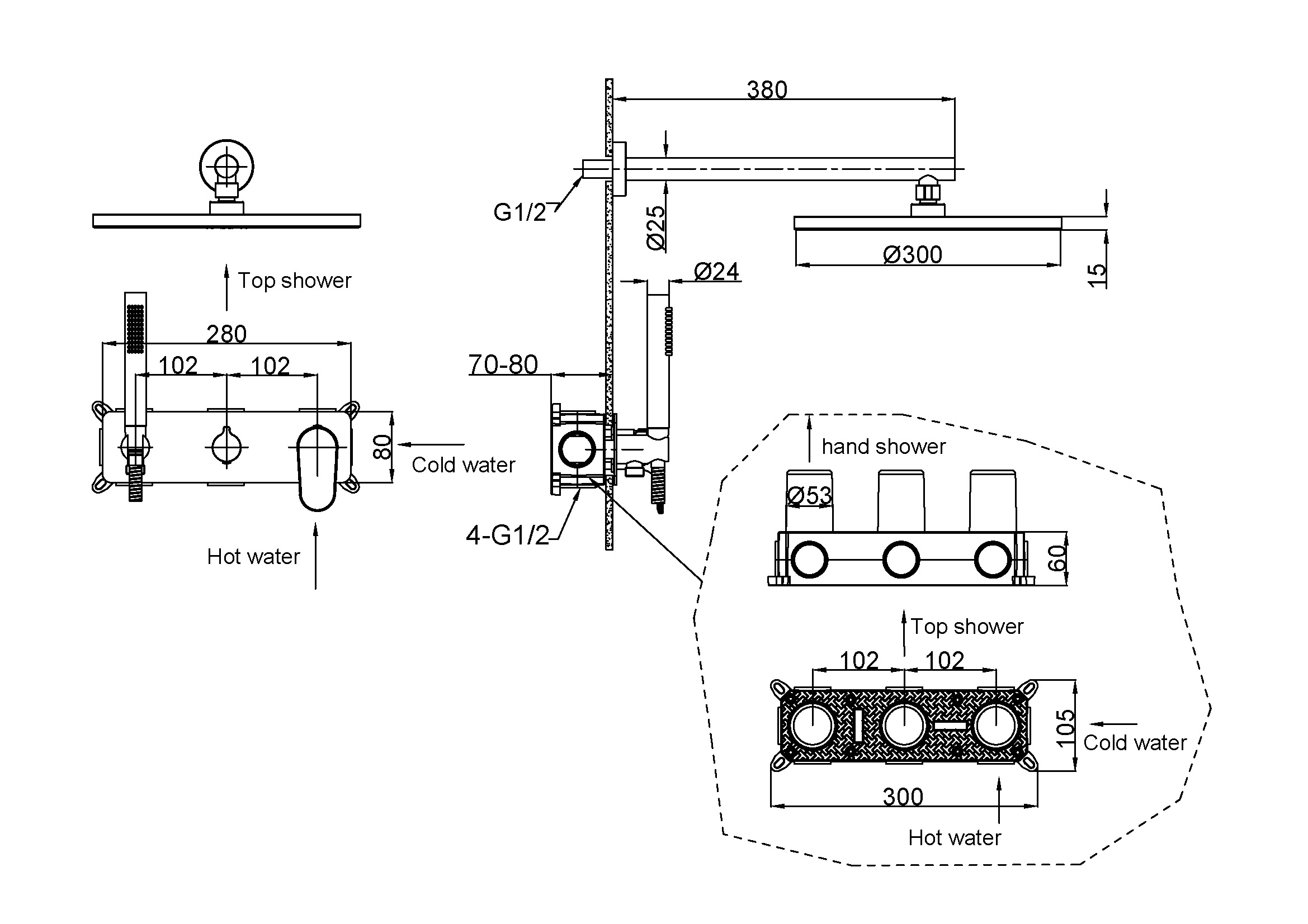 Душевая система для душа Boheme Spectre 454-MG (со скрытой частью) золото матовое