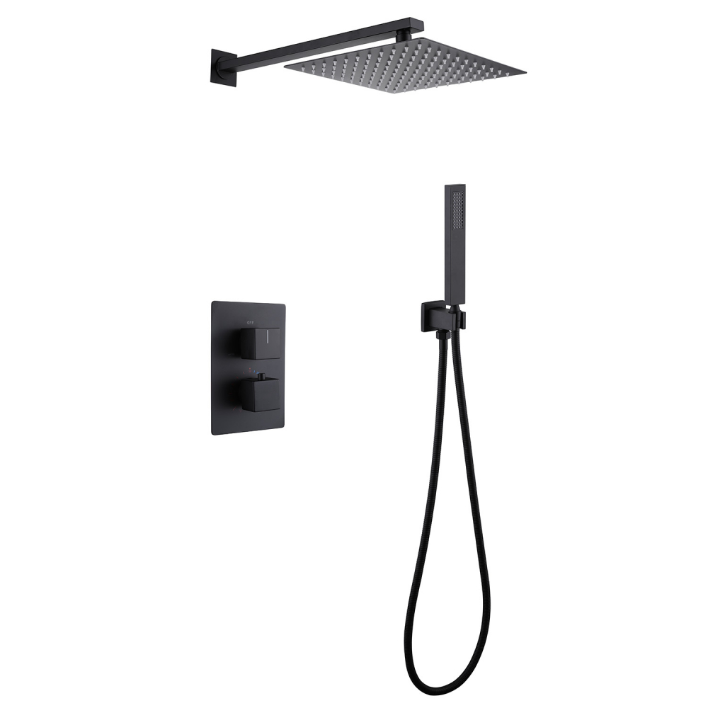 Душевая система для душа с термостатом Abber Daheim AF8251B, материал - латунь, цвет - чёрный матовый.