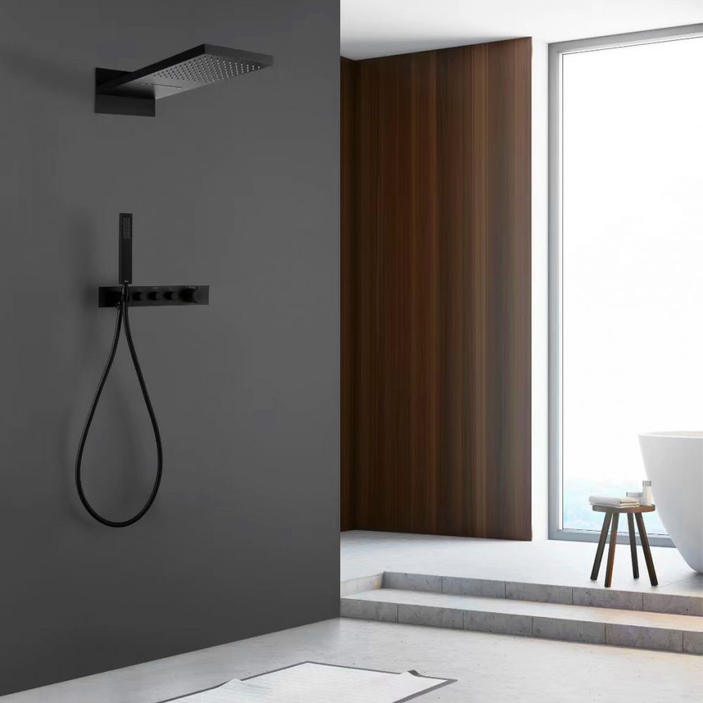 Душевая система для душа с термостатом Abber Rund AF8752B, материал - латунь, цвет - черный матовый.