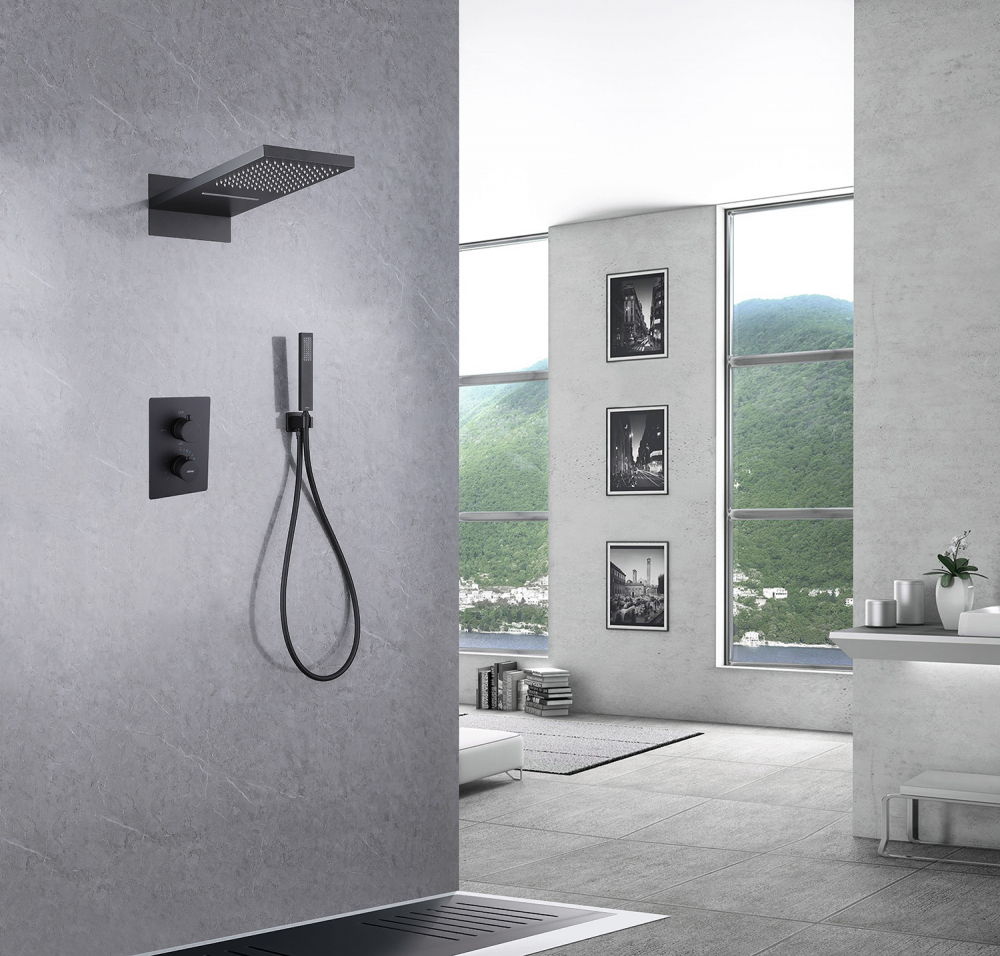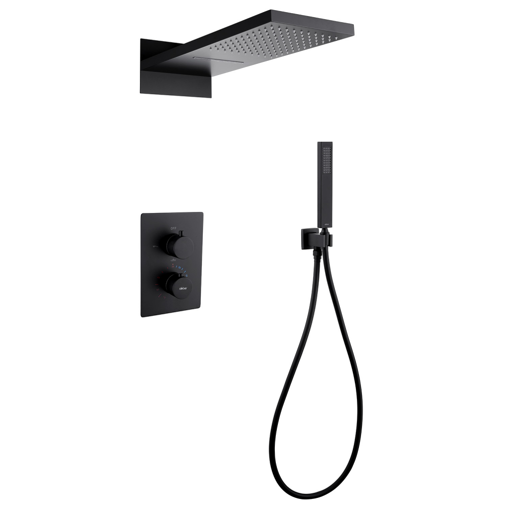 Душевая система для душа с термостатом Abber Weiss Insel AF8052B, чёрный матовый