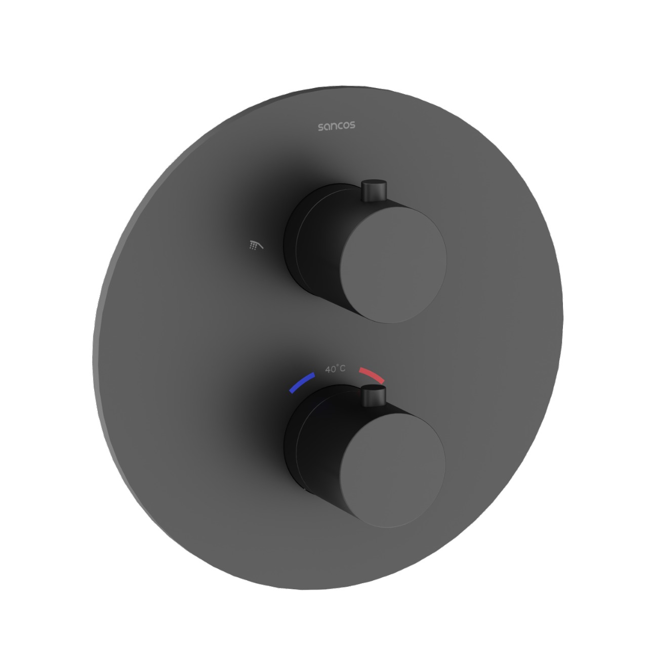 Душевая система для душа с термостатом Sancos Etna SC9010MB со скрытой частью, материал - латунь, цвет - чёрный матовый.