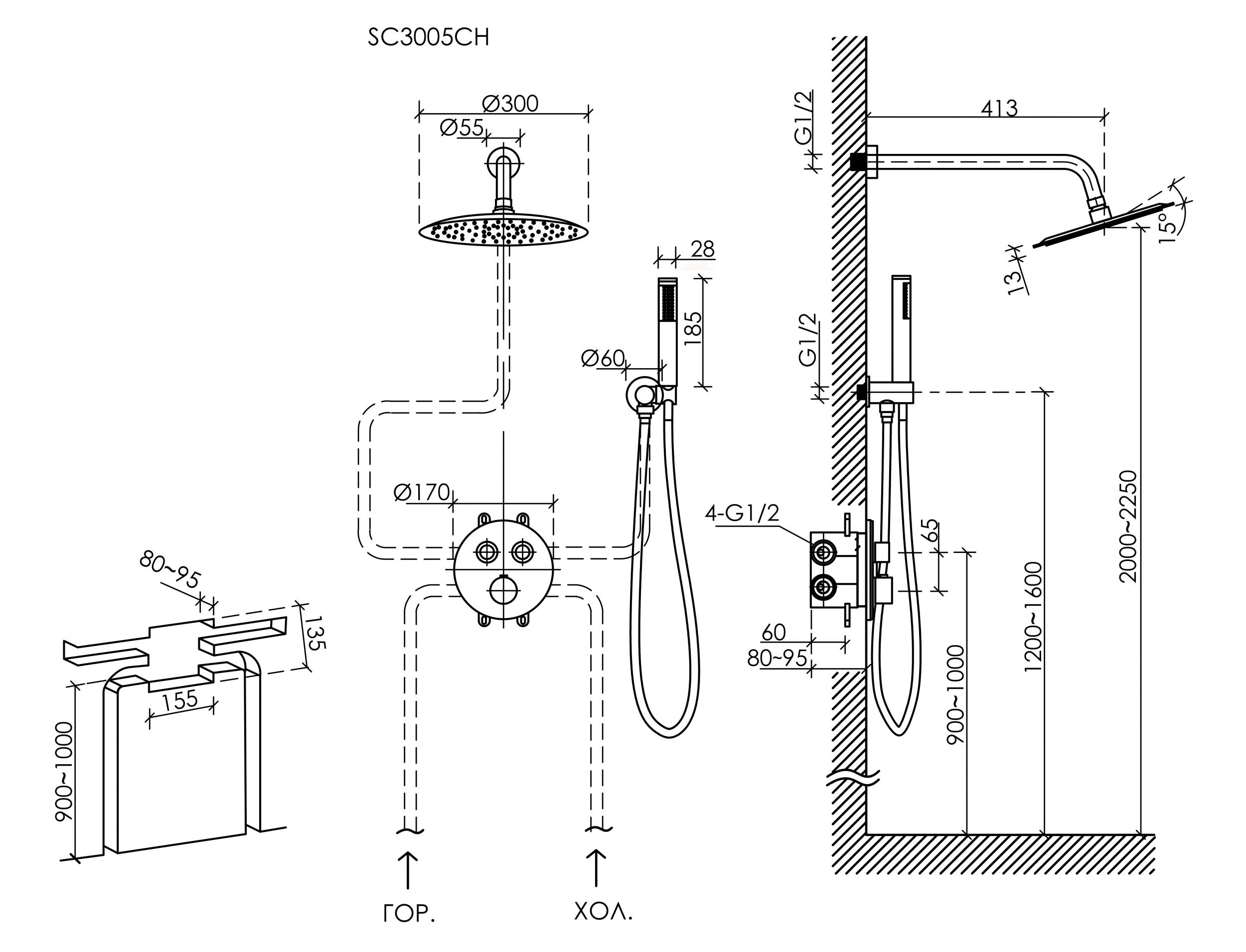 Характеристики душевая система без излива Sancos (SC3005MB)