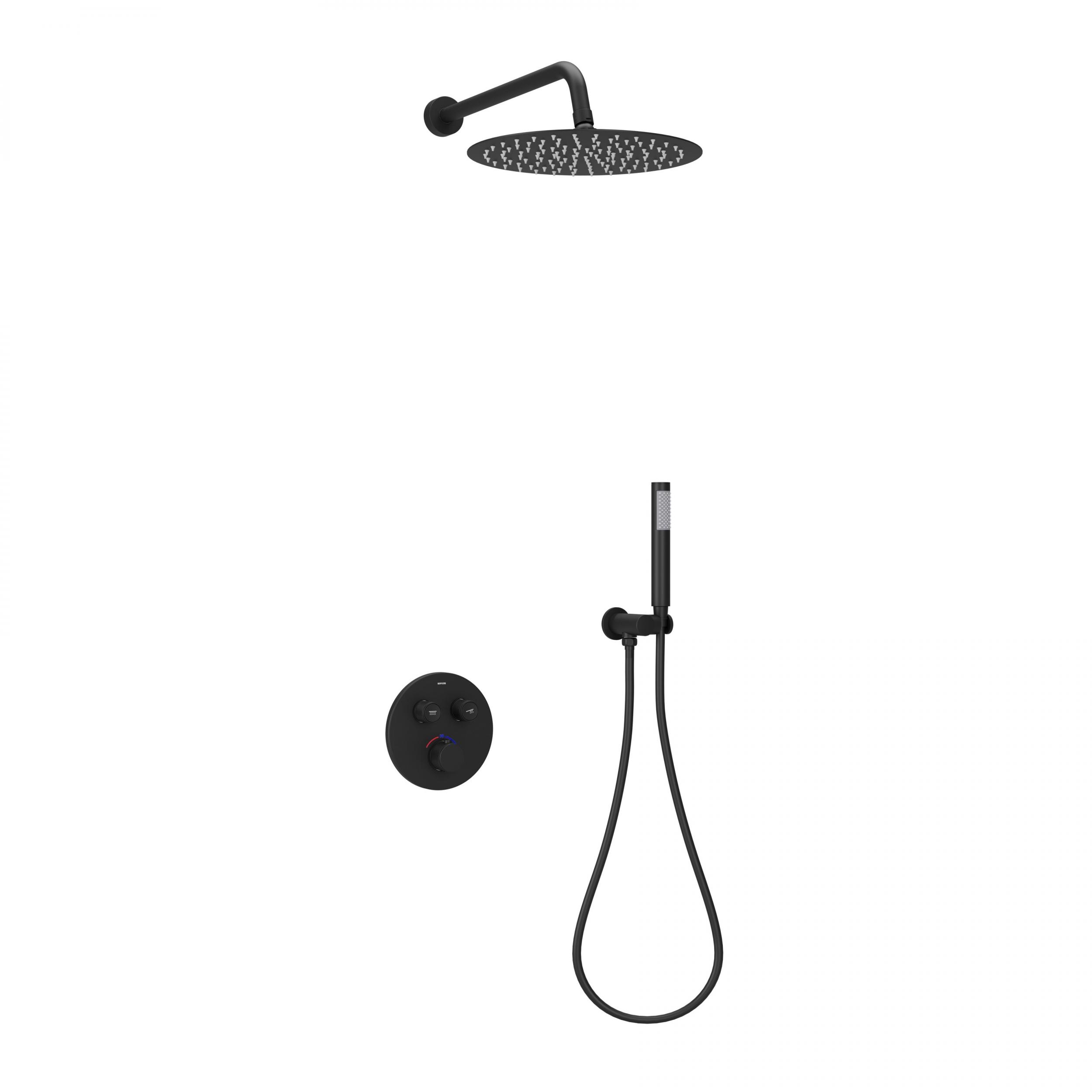 Душевая система для душа с термостатом Sancos Link SC3005MB со скрытой частью, материал - латунь, цвет - чёрный матовый.