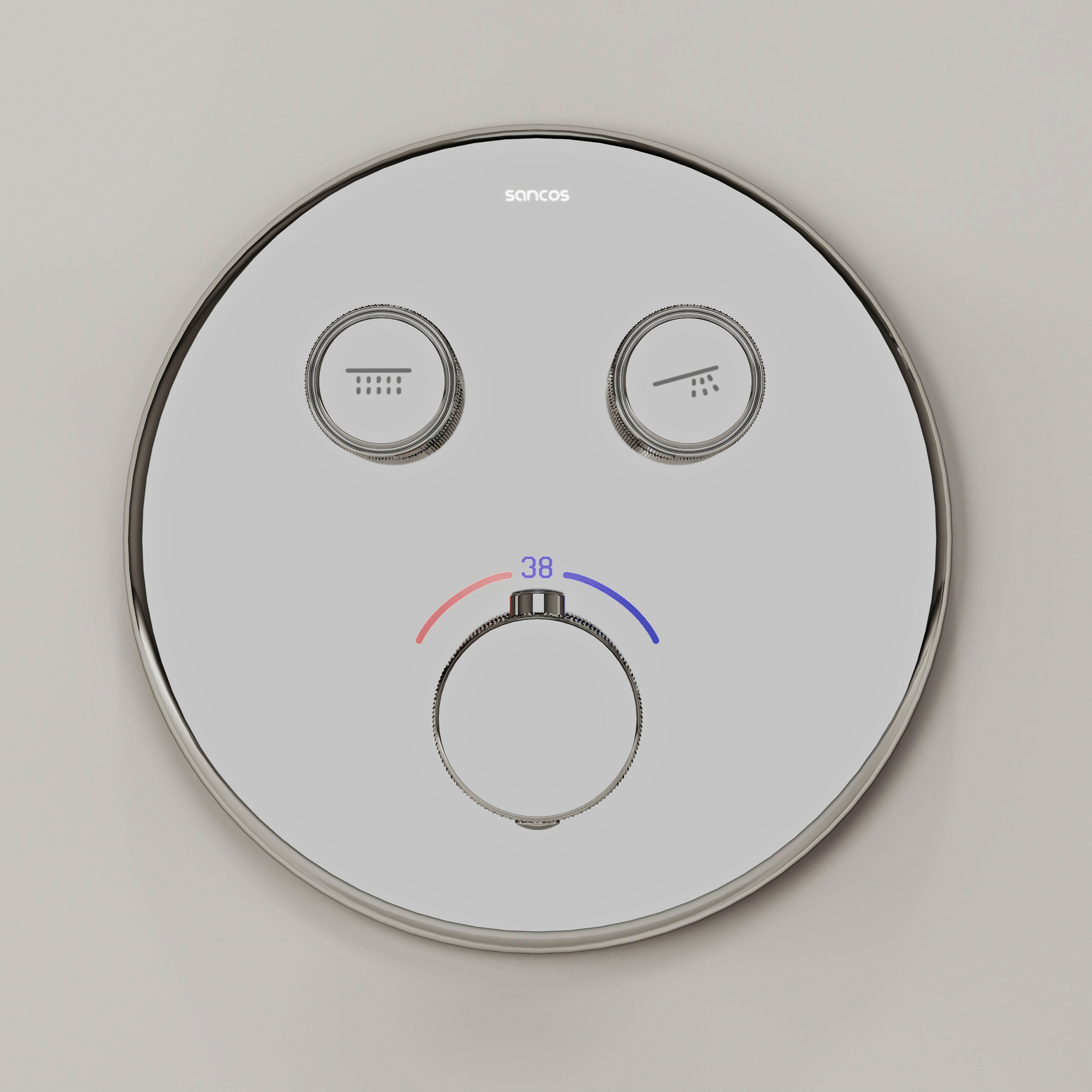 Душевая система для душа с термостатом Sancos Space SC3006CH со скрытой частью, материал - латунь, цвет - хром.