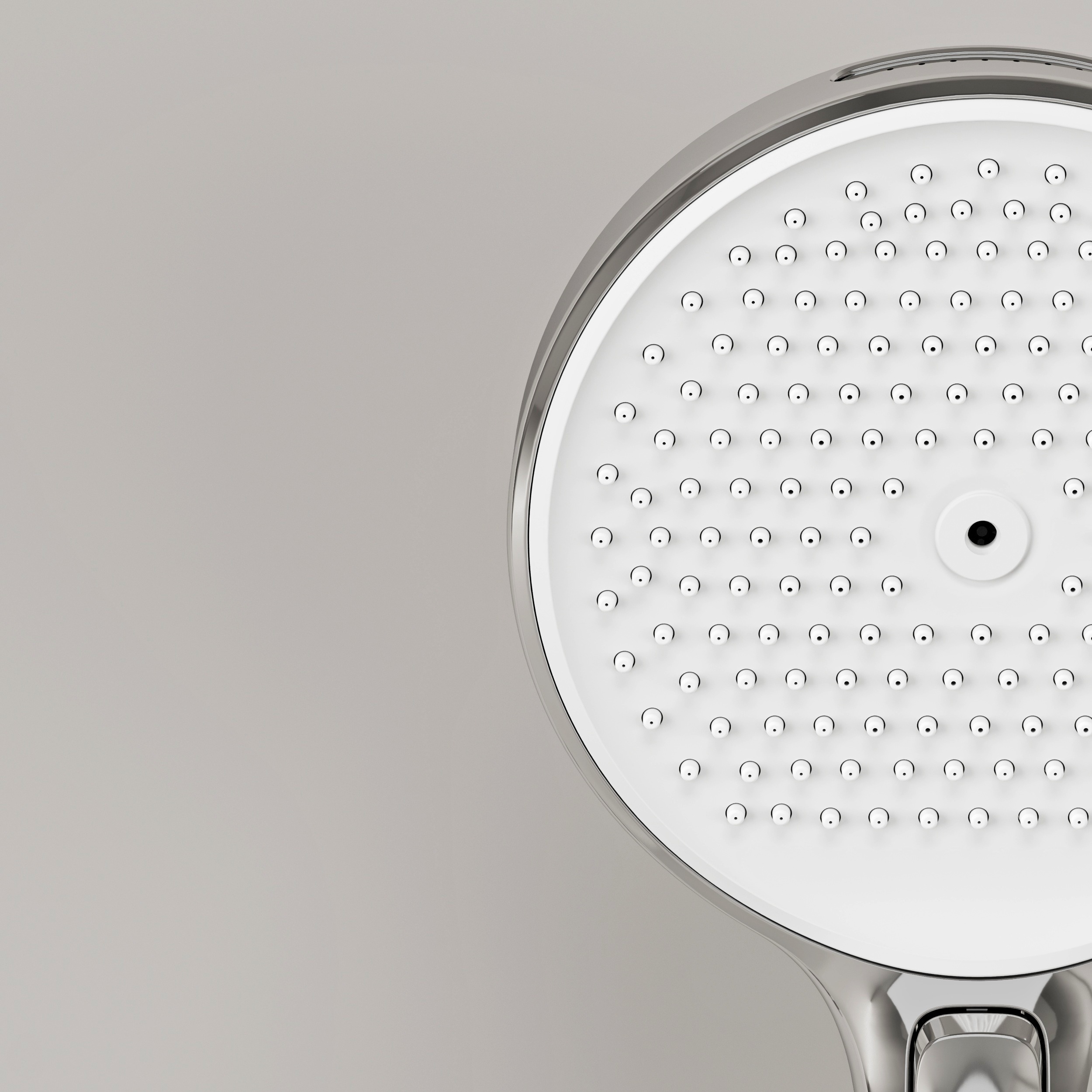 - Многофункциональный ручной душ - 4 режима потока воды, диаметр лейки - 130 мм, кнопка для переключения между режимами.