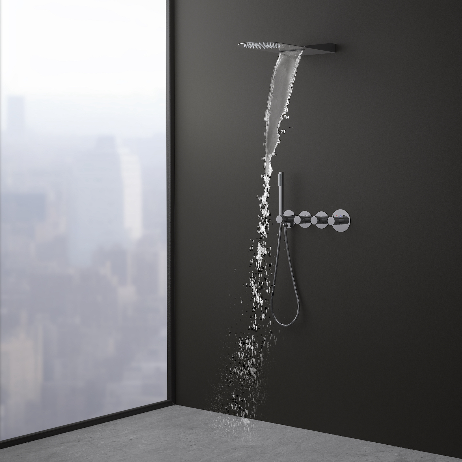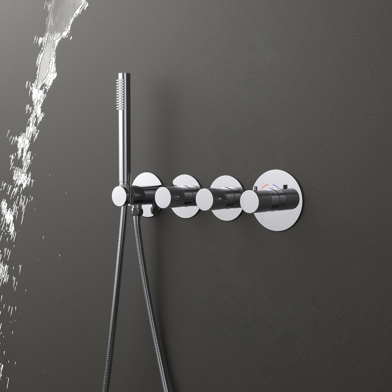 Душевая система с термостатом Timo Saona 2350 относится к премиальному сегменту, предназначена для монтажа в полой или твердой стене. Термостатический картридж поддерживает стабильную температуру воды, обеспечивая максимально комфортные условия для принятия водных процедур. Настенный душ с двумя режимами позволяет принимать водные процедуры в зависимости от настроения. Регулируя напор воды можно получить массажное воздействие различной интенсивности. Используя режим "каскад"- получают седативное (успокаивающее) воздействие на затылочную часть головы или шейный отдел. Основные преимущества встроенной системы: элегантный внешний вид, все коммуникации и крепления спрятаны в стену, снаружи видны только декоративные элементы. Установить встроенную систему можно в любом месте. Использовать такой смеситель очень удобно, регулировка температуры воды осуществляется ручкой термостата (расположена справа). Переключение режимов "каскад", "тропический душ", "ручной душ" и увеличение напора осуществляется поворотом ручек диверторов расположенных слева от термостата. В положении ручек диверторов в положение 12:00 (смеситель выключен). Смеситель может работать в нескольких режимах одновременно"каскад"+"ручной душ", "тропический душ"+"ручной душ". Сложностей монтажа не возникает при установке элементов душевой системы опытным сантехником.