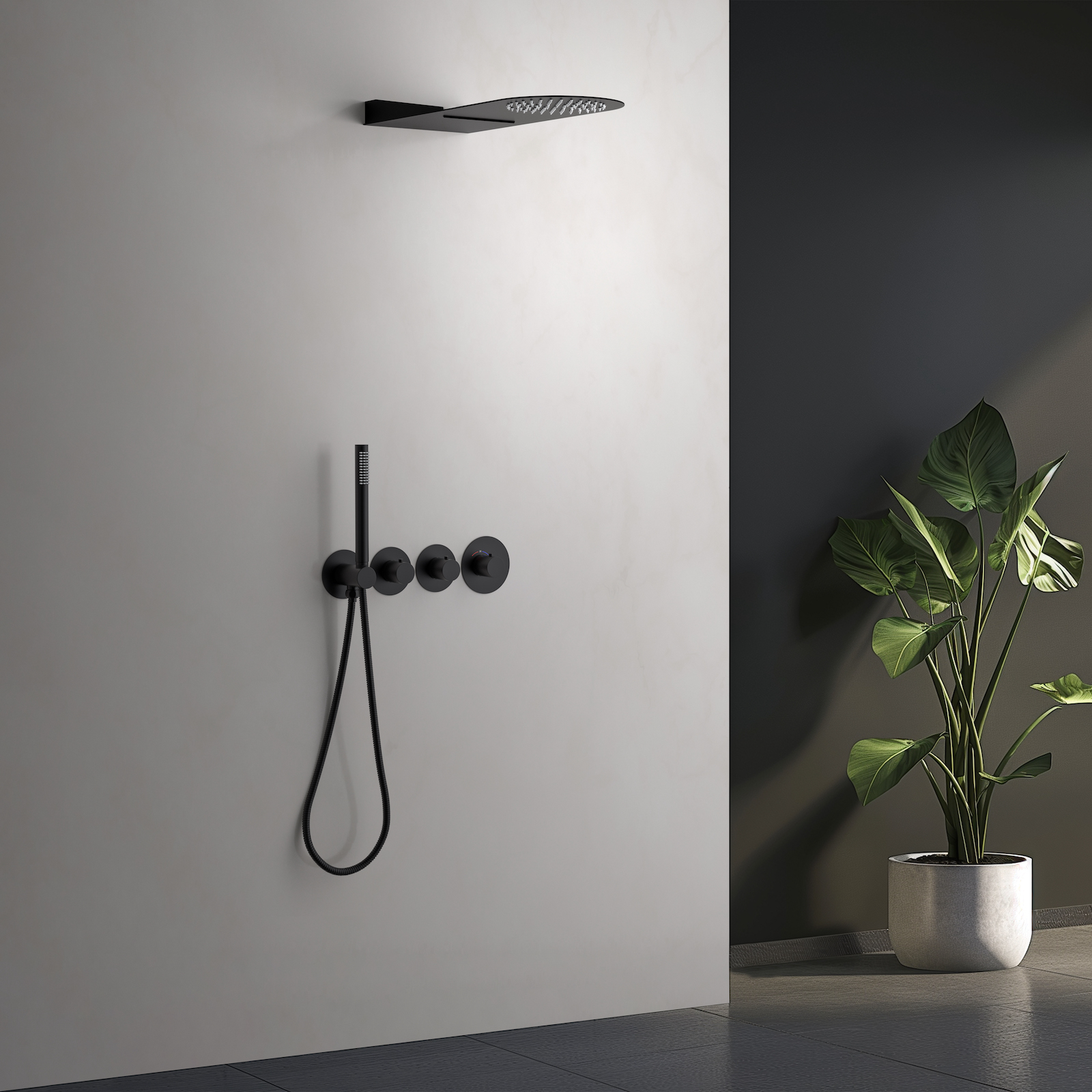 Душевая система для душа с термостатом Timo Saona SX-2350/03SM (со скрытой частью) чёрный матовый