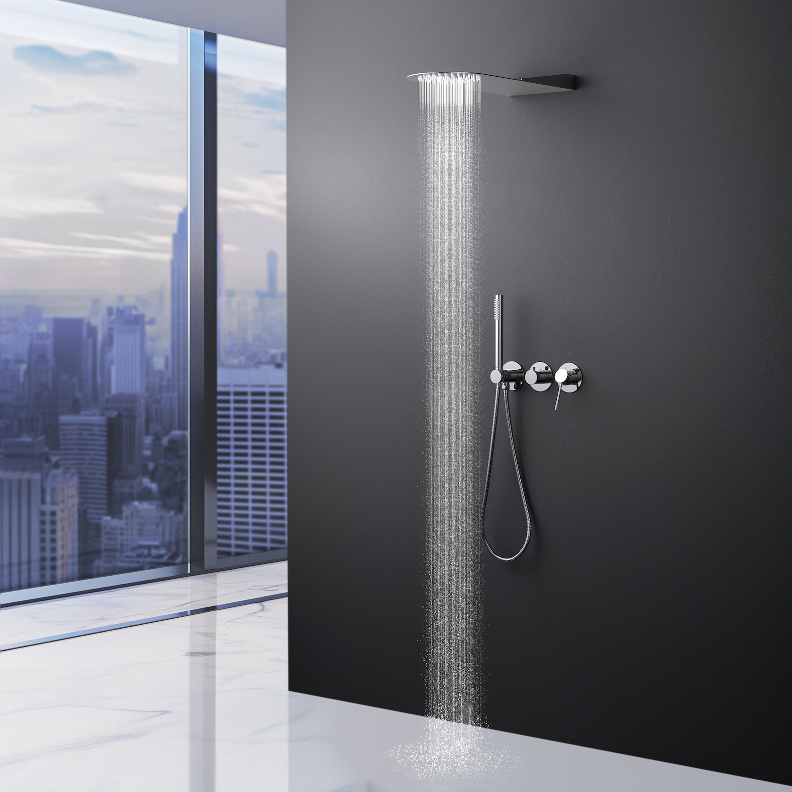 Встраиваемая душевая система Saona 2340, предназначена для монтажа в полой или твердой стене. Основные преимущества встроенной системы: коммуникации, крепления и механизмы спрятаны в стену и видны только декоративные элементы. Установить встроенную систему можно в любом месте. Использовать такой смеситель очень удобно, регулировка температуры и напора воды осуществляется одним рычагом. Настенный душ с двумя режимами позволяет принимать водные процедуры в зависимости от настроения. Регулируя напор воды можно получить массажное воздействие различной интенсивности. Используя режим "каскад"- получают седативное (успокаивающее) воздействие на затылочную часть головы или шейный отдел. Переключение режимов подачи воды ("тропический душ", "каскад" или ручная лейка) осуществляется поворотом ручки дивертора. Сложностей монтажа не возникает при установке элементов душевой системы опытным сантехником. Внимательно изучите инструкцию по монтажу.