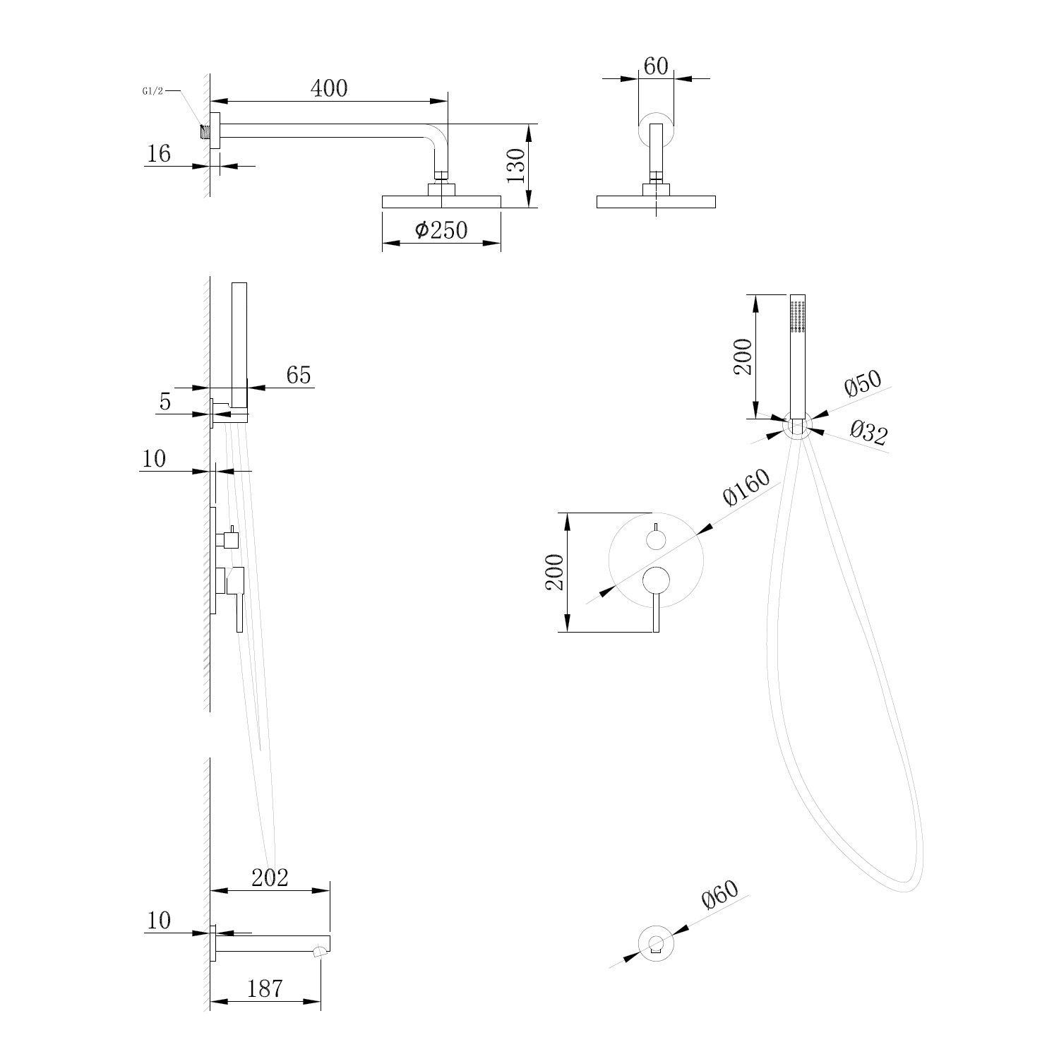 - верхний душ ,