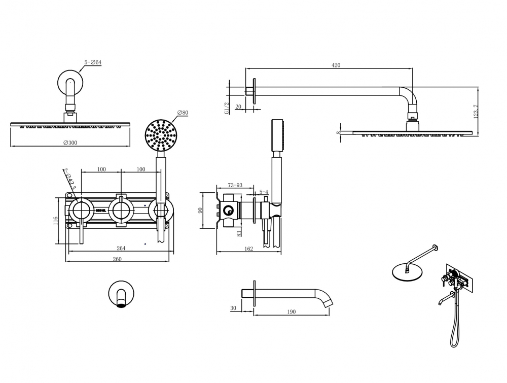- верхний душ ,