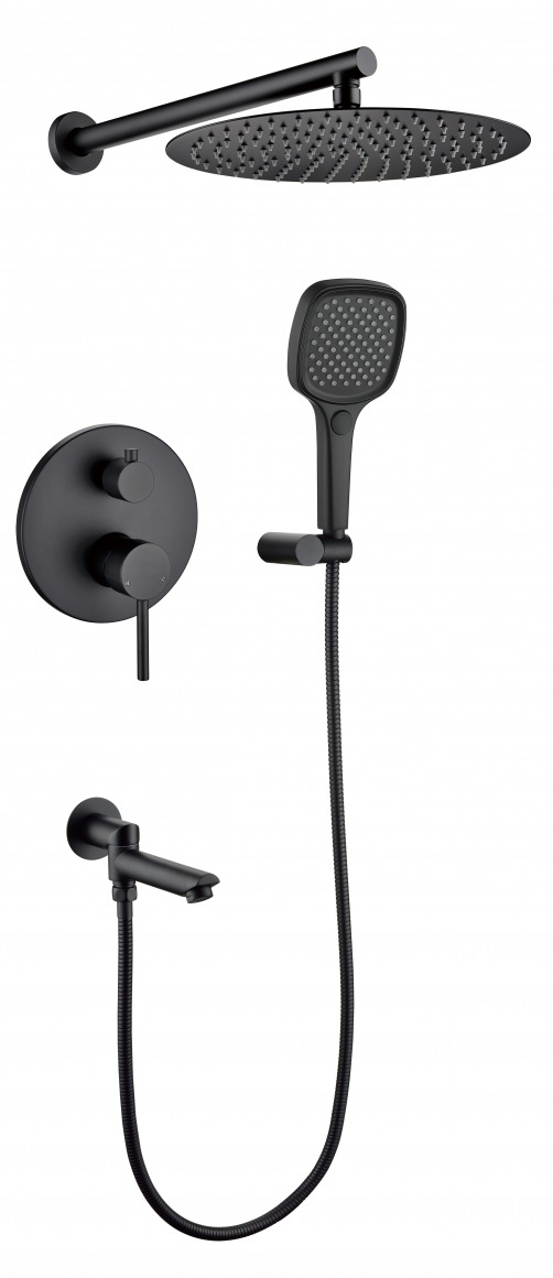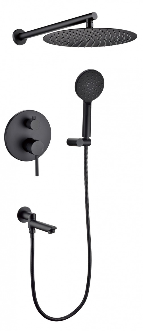 Душевая система с изливом для ванны Grocenberg GB5001BL, материал латунь, цвет чёрный матовый.