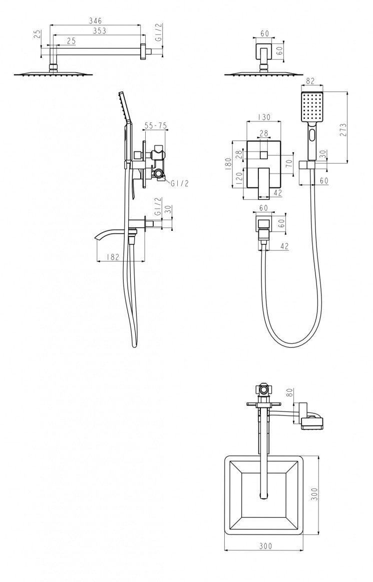 Характеристики душевая система с изливом Grocenberg (GB5007BR)