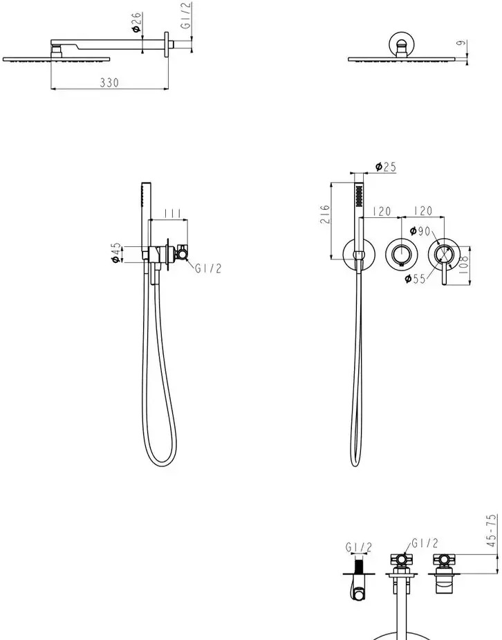 Характеристики душевая система без излива Grocenberg (GB5099NK-4)