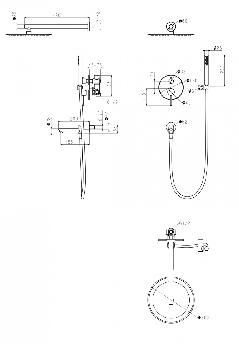 Характеристики душевая система с изливом Grocenberg (GB5099BG-1)