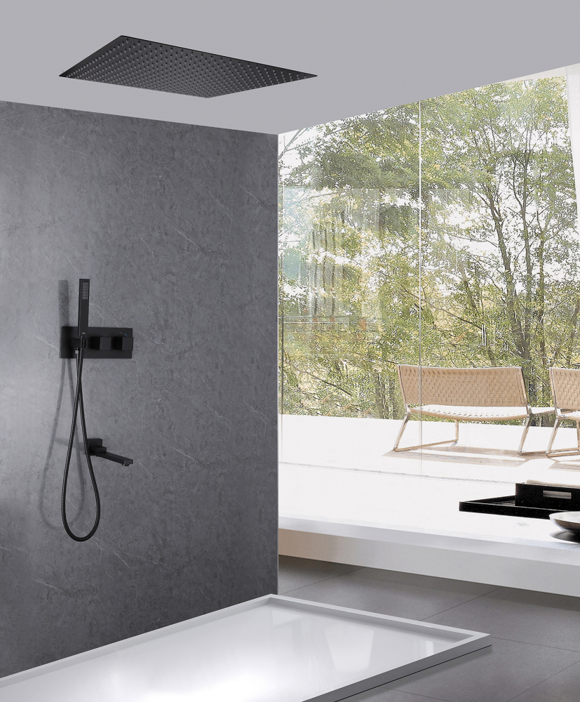 Душевая система для ванны с термостатом Abber Daheim AF8254B, черный матовый