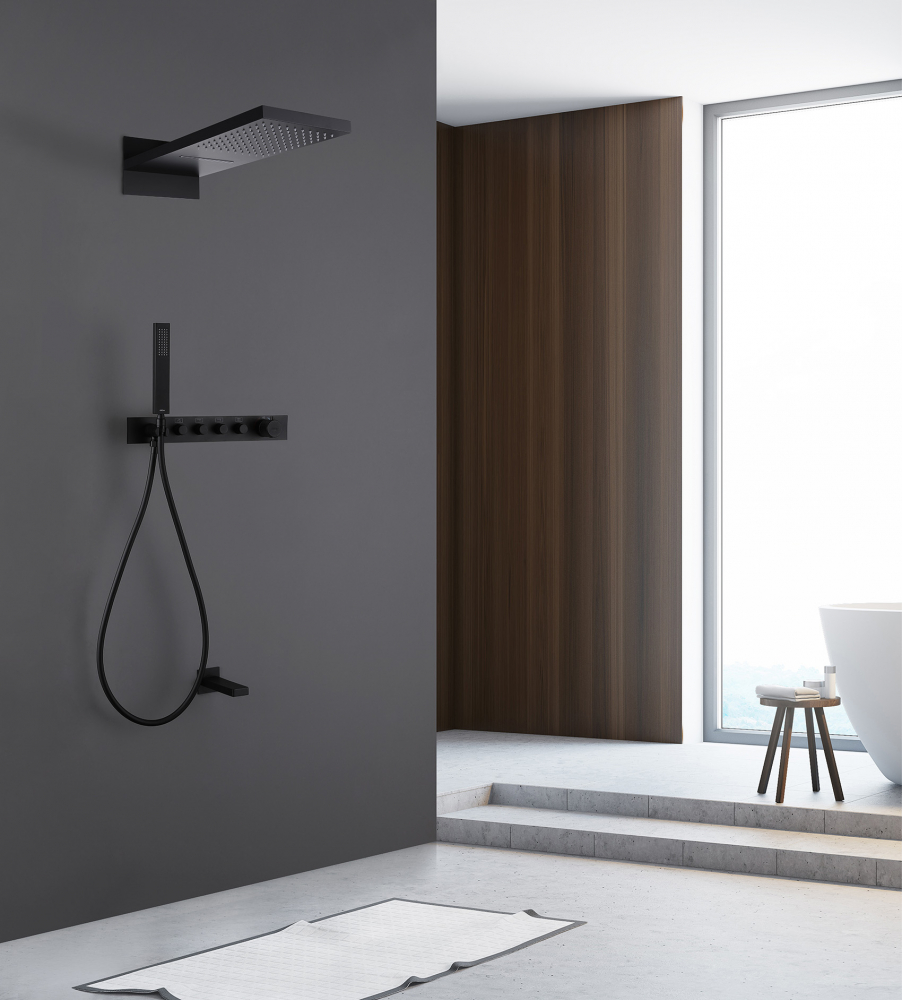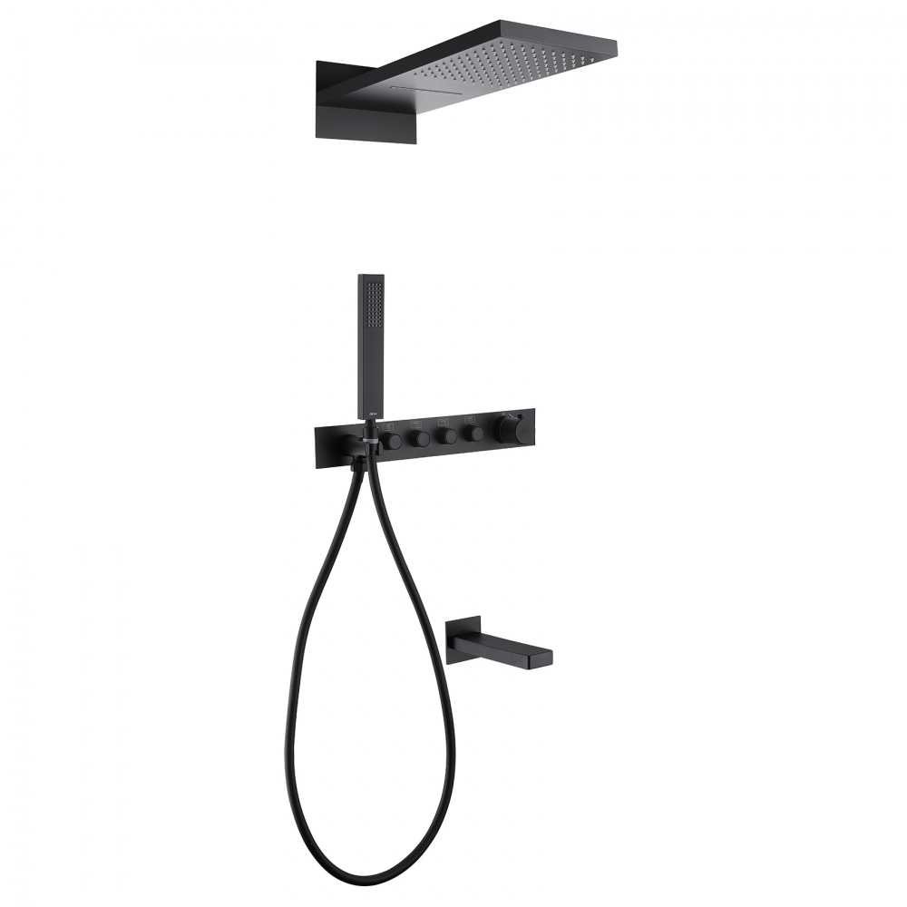 Душевая система для ванны с термостатом Abber Rund AF8753B, черный матовый