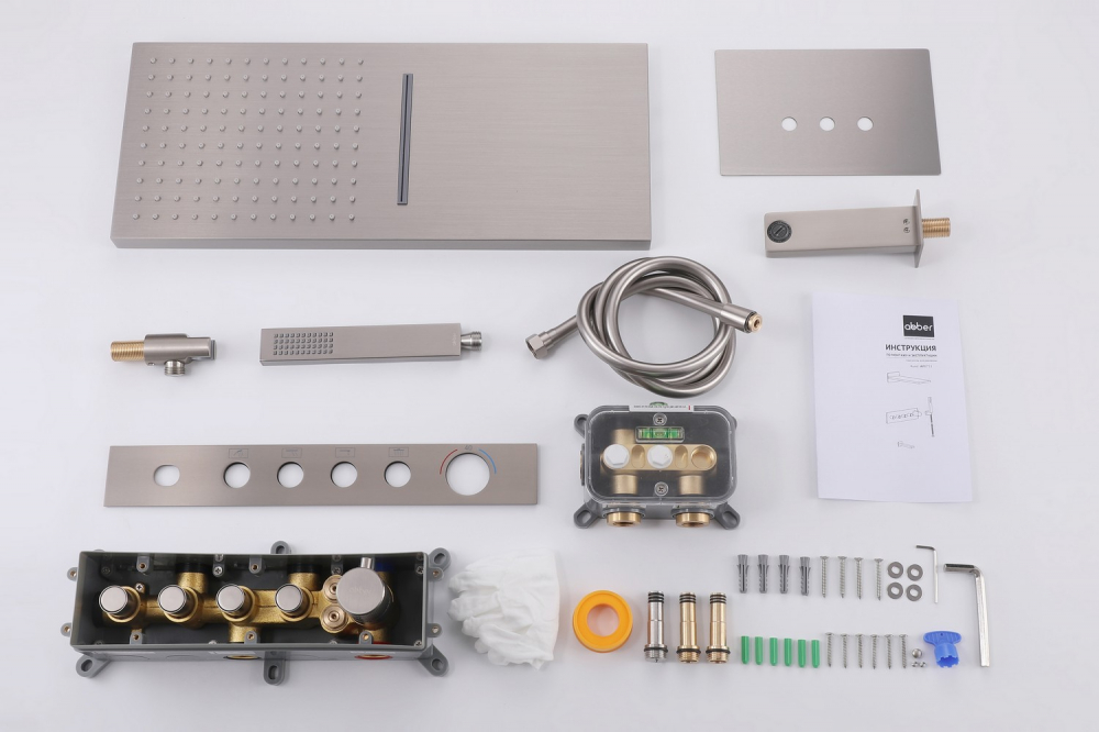 Душевая система для ванны с термостатом Abber Rund AF8753SP, со скрытой частью в комплекте, материал - латунь, цвет - сатин.