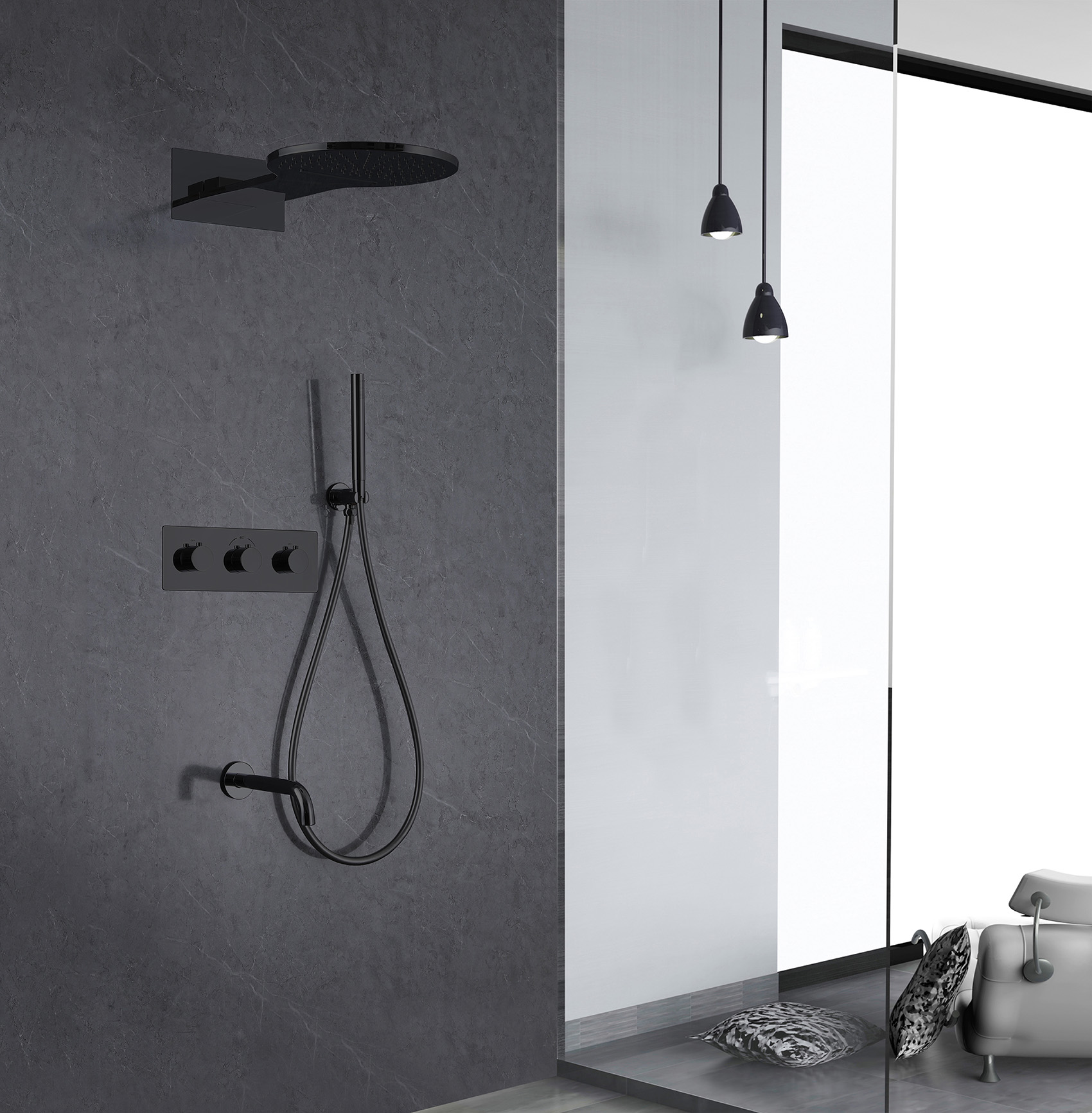 Душевая система для ванны с термостатом Abber Wasser Kreis AF8150B, чёрный матовый