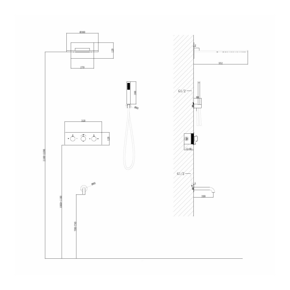 Душевая система для ванны с термостатом Abber Wasser Kreis AF8150G, со скрытой частью в комплекте, материал латунь, цвет золото матовое.