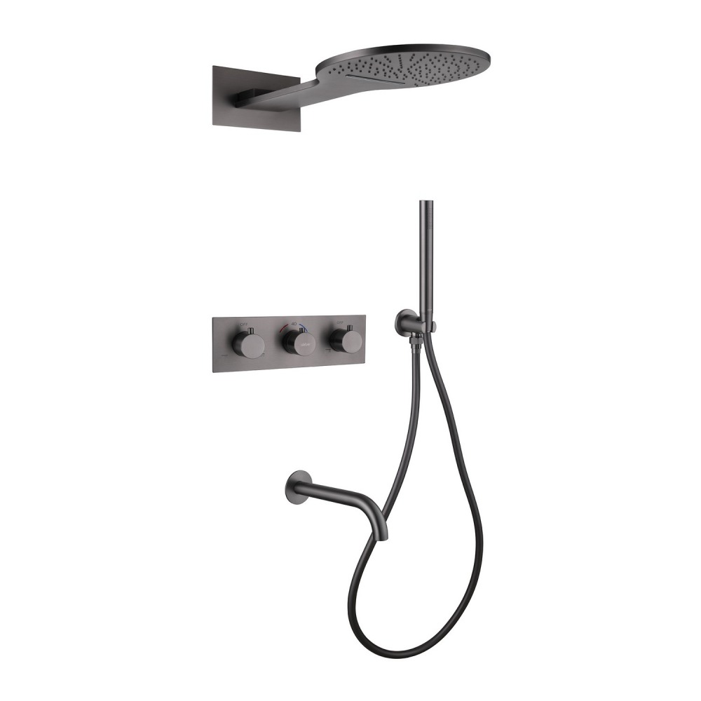 Душевая система для ванны с термостатом Abber Wasser Kreis AF8150NG, со скрытой частью в комплекте, материал латунь, цвет никель.