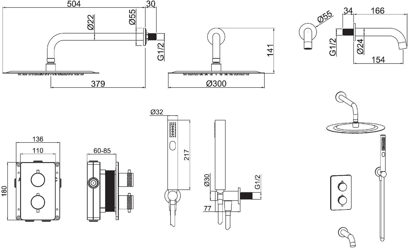 Характеристики душевая система с изливом Allen Brau (5.31014-31)