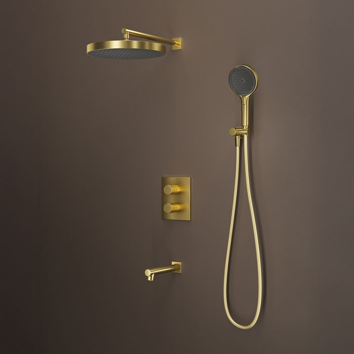Встраиваемая душевая система с термостатом, тропическим и ручным душем и изливом Duna – воплощение актуальных трендов в дизайне смесителей в безупречном исполнении: фрезеровка, модные цвета и фактуры. Ручка выполнена из латуни для сохранения чёткости линий фрезеровки. Европейские комплектующие и технологии для премиального качества. Без риска ожогов: термостатический картридж Sedal® (Испания) обеспечивает стабильную температуру, комфорт и безопасность. Подключён напрямую к горячей воде корпус смесителя не нагревается. Увеличенная кнопка безопасности для полной защиты от ожогов: интегрирована в ручку, не выбивается из дизайна и легко нажимается, фиксация на 38° защищает от случайного включения горячей воды. Продуманная функциональность: внушительная верхняя лейка Ø32 см обеспечит всеобъемлющий поток, ручная лейка с 3 режимами. Гибкий и надёжный силиконовый шланг 1,5 м. Надёжная внутренняя инженерия: встроенные редукторы выравнивают давление ГВС и ХВС и улучшают точность термостата, обратный клапан исключает перетекание воды между трубами. Современное решение для встроенного монтажа: UniCore – цельный корпус без монтажной коробки. Латунный смеситель устанавливается без дополнительных элементов. Съёмные декоративные элементы – идеально прилегают к стене и просто заменяются. Цельнолитая латунная панель с чёткими гранями для чистой геометрии и плотной посадки. Элементы монтируются после отделки ниже риск повреждений. Можно обновить внешний вид без демонтажа всей системы. Повышенная стойкость к бытовой химии и механическим повреждениям благодаря надёжному PVD-покрытию.