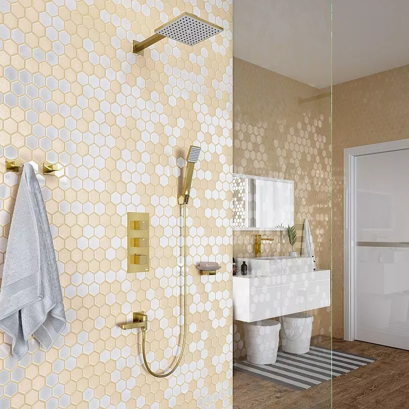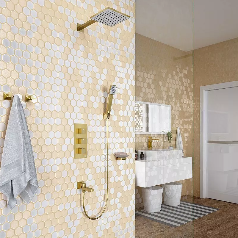 Душевая система для ванны с термостатом Timo Tetra-Thermo SX-0199/17SM, золото матовое