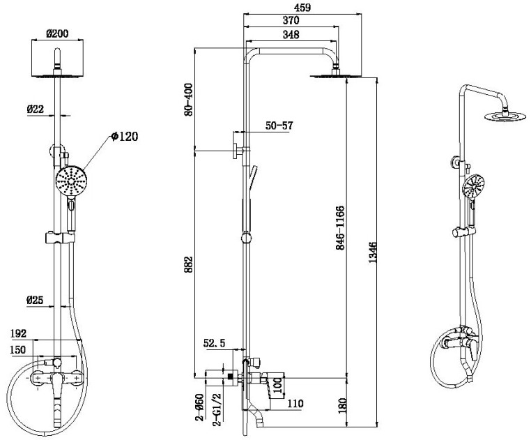 - Шланг для душа: 1,5 м шланг для душа PVC