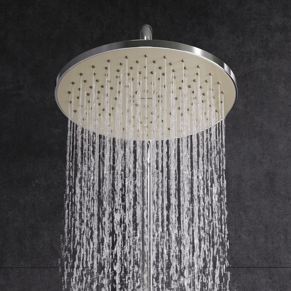 Тотальный дизайн в действии: все детали душевой системы – от пропорций ручного и верхнего душей до рисунка расположения форсунок на лейках. Премиальные размеры и продуманные детали: увеличенный диаметр душевых леек (верхний душ 254 мм и ручной душ 120 мм) позволит ощутить преимущества тропического душа тогда как увеличенная длина шланга 1750 мм обеспечит свободу движений во время принятия душа. Телескопическая поворотная штанга регулируется по высоте в диапазоне от 1030 до 1460 мм обеспечивая комфорт для людей любого роста а шаровой шарнир в держателе верхнего душа позволяет регулировать угол его наклона. Нижнее крепление штанги выполнено в виде полочки а переключатель верхний-ручной душ является ее продолжением. Нажав на него вы можете менять источник потока воды от ручной лейки к верхнему душу.