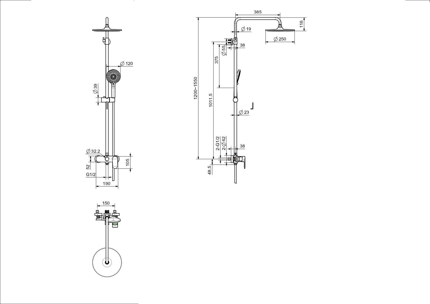 - Межцентровое расстояние (мм): 150